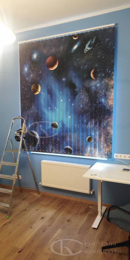 Если из многообразия Вы не смогли подобрать подходящие вертикальные жалюзи, на ткань можно нанести любое изображение методом фотопечати: любимое фото, детский рисунок или логотип компании. Рисунок получается четким и долговечным, он не сотрется и не выгорит на солнце.